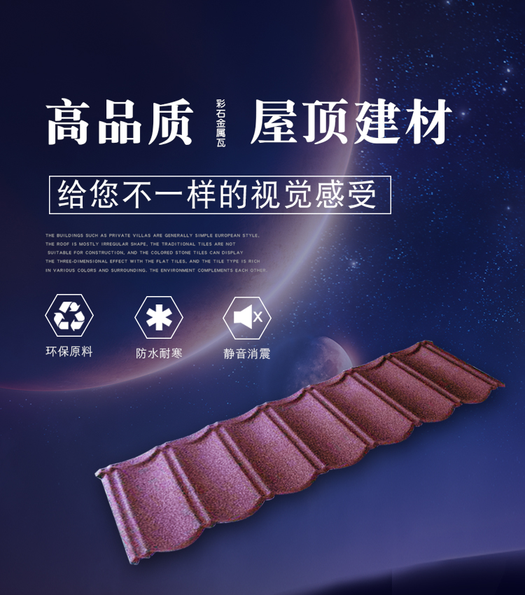 The surface of the metal fish scale tile has a conical convexity, high-grade and elegant, with a modern sense in the retro, elegant and subtle, delicate and natural, and strong in three-dimensional. Suitable for applications with spherical, conical, fan-shaped and irregularly sloping roofs above 30°